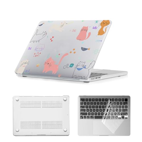 HLAAJJX Coque Étui pour Macbook Air M4 M3 M2 13 Pouces 2025 2024 2023 2022 A3240 A3113 A2681 Retina/Touch ID,Case Cover Fine Rigide Protection & Housse de Clavie,Chat Mignon