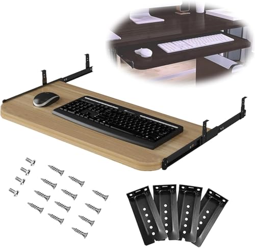 Support Coulissant pour Clavier De Souris D’Ordinateur avec Tiroir Étagère Plateau 540/600/700×270mm pour Bureau Et Table Pc sous Le Bureau Tiroir Plateau De Clavie, Walnut, 60x27cm