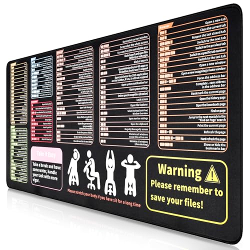 Tapis de Souris avec Touches de Raccourci Excel, Grand Tapis de Souris de Jeu avec Raccourcis Clavier, Mouse Pad Antidérapant avec Motifs de Raccourci Clavie