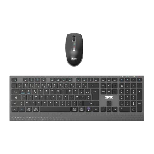PORT Designs Pack Clavier + Souris Bluetooth sans Fil 2.4 GHz Rechargeable USB-C avec Touche IA