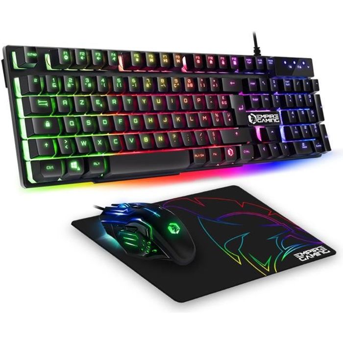 EMPIRE GAMING - Pack MK800 Filaire - Clavier Gaming AZERTY (Layout Français) RGB 105 Touches 19 Touches Anti-Ghosting - Souris Gamer 2400 DPI - Tapis de Souris - PC PS4 PS5 Xbox One/Series Mac