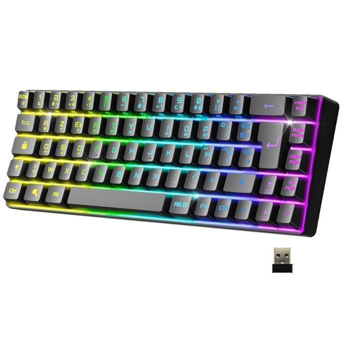 EMPIRE GAMING - K508 Clavier Gaming sans Fil Compact TKL 65% (AZERTY FR) - Via Wireless / 2.4G/ Type-C - pour PS4/PS5/PC/Mac - Rétroéclairage RGB - 68 Touches - 23 Touches Anti-Ghosting - Noir (2024)