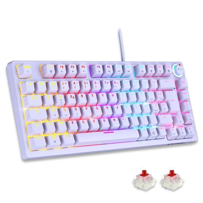 EMPIRE GAMING - Nouveau 2025 - K248 Clavier Mécanique Gaming Filaire Switches MX Red (FR AZERTY) - Type C - pour PC/PS4/PS5/Xbox - Rétroéclairage RGB - 82 Touches - 26 Touches Anti-Ghosting (Blanc)