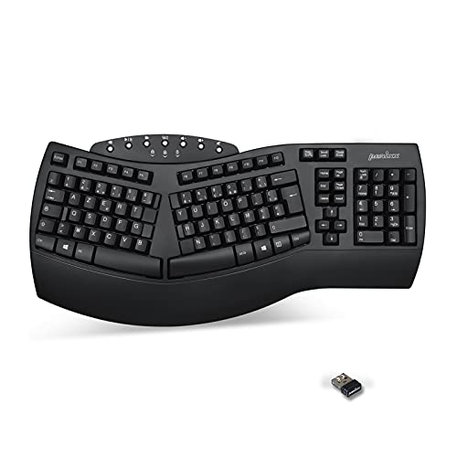 Perixx PERIBOARD-612, Grand Clavier Ergonomique sans Fil, Connexion 2.4Ghz et Bluetooth 4.0 pour Windows et Mac – Noir, AZERTY