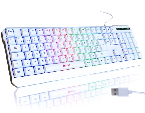 KLIM Chroma – Clavier Gaming AZERTY FR avec Rétroéclairage RGB – Silencieux, Étanche, Ergonomique, Léger & Durable – Clavier USB Filaire pour PC, Mac, PS4, PS5 – Blanc