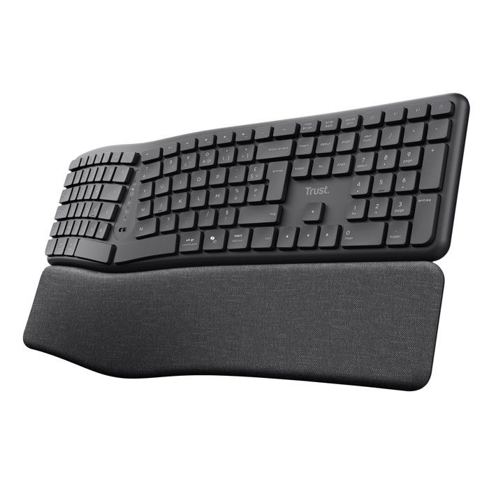 Clavier Ergonomique sans Fil AZERTY Français - Trust - Arvia - Bluetooth + 2.4GHz Multi-appareils - Silencieux - Repose-Paume