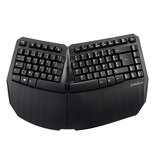 APM Clavier Ergonomique sans-Fil, Récepteur 2.4 GHz, Repose Poignet intégré, Clavier Français AZERTY, Conception en Deux Parties, Compatible avec PC Mac Ordinateur Portable, 100043