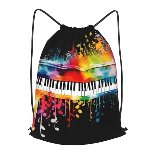 SMAZDFXX Sac à dos à cordon de serrage coloré avec clavier de piano et notes de musique, sac à dos pliable, sac de sport pour le shopping, le yoga