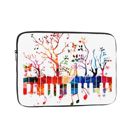 Housse de protection pour ordinateur portable de 17 pouces en tissu Oxford résistant aux chocs avec motif notes de musique et clavier de piano coloré