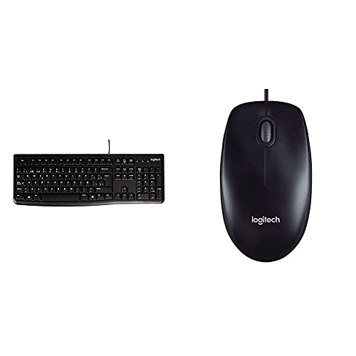 Logitech K120 Clavier Filaire, Clavier QWERTY Espagnol - Noir M90 Souris Filaire USB, Suivi Optique 1000 PPP, Ambidextre, Compatible avec PC/Mac/Portable - Noire