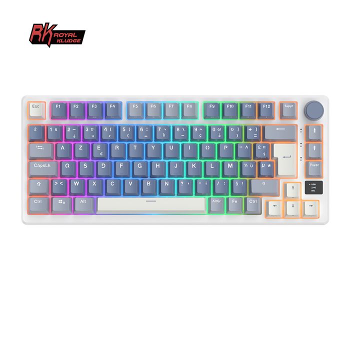 RK ROYAL KLUDGE M75 Clavier Mécanique sans Fil AZERTY BT5.0/2.4G/USB-C Compact 75% Clavier Gamer MécaniqueK-Silver Switch