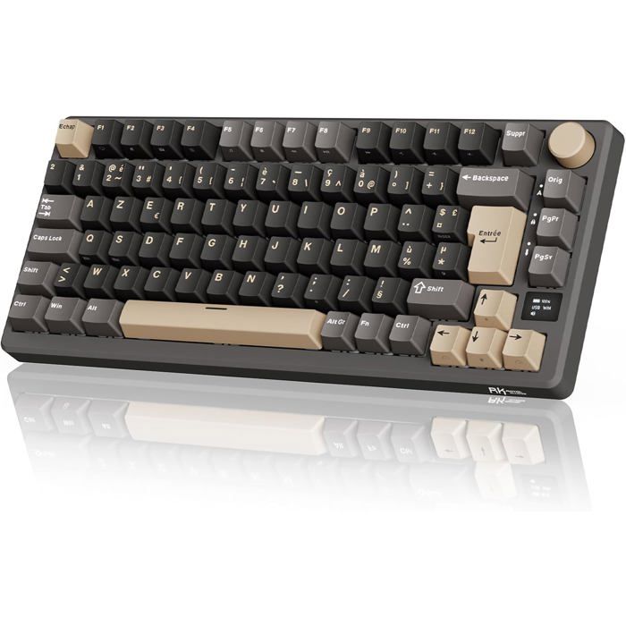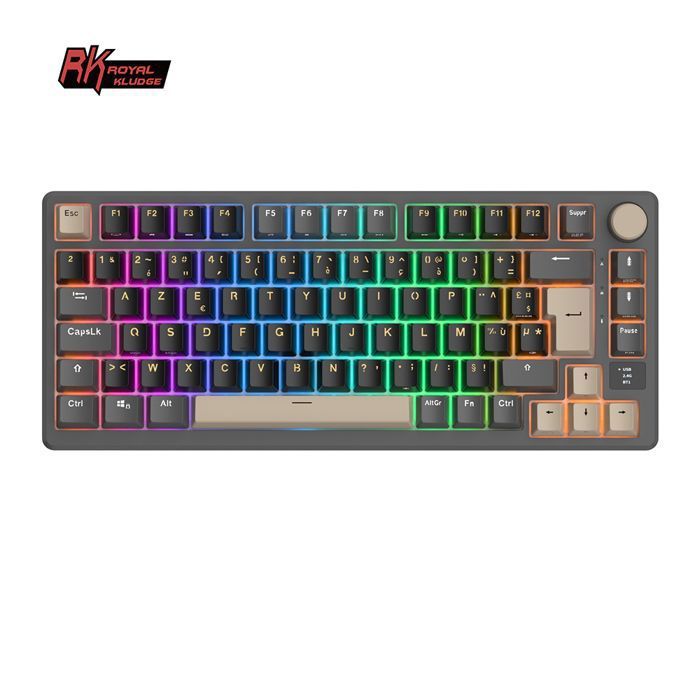 RK ROYAL KLUDGE M75 Clavier Mécanique sans Fil Azerty BT5.0/2.4G/USB-C Compact 75% Clavier Gamer MécaniqueInterrupteur Marron
