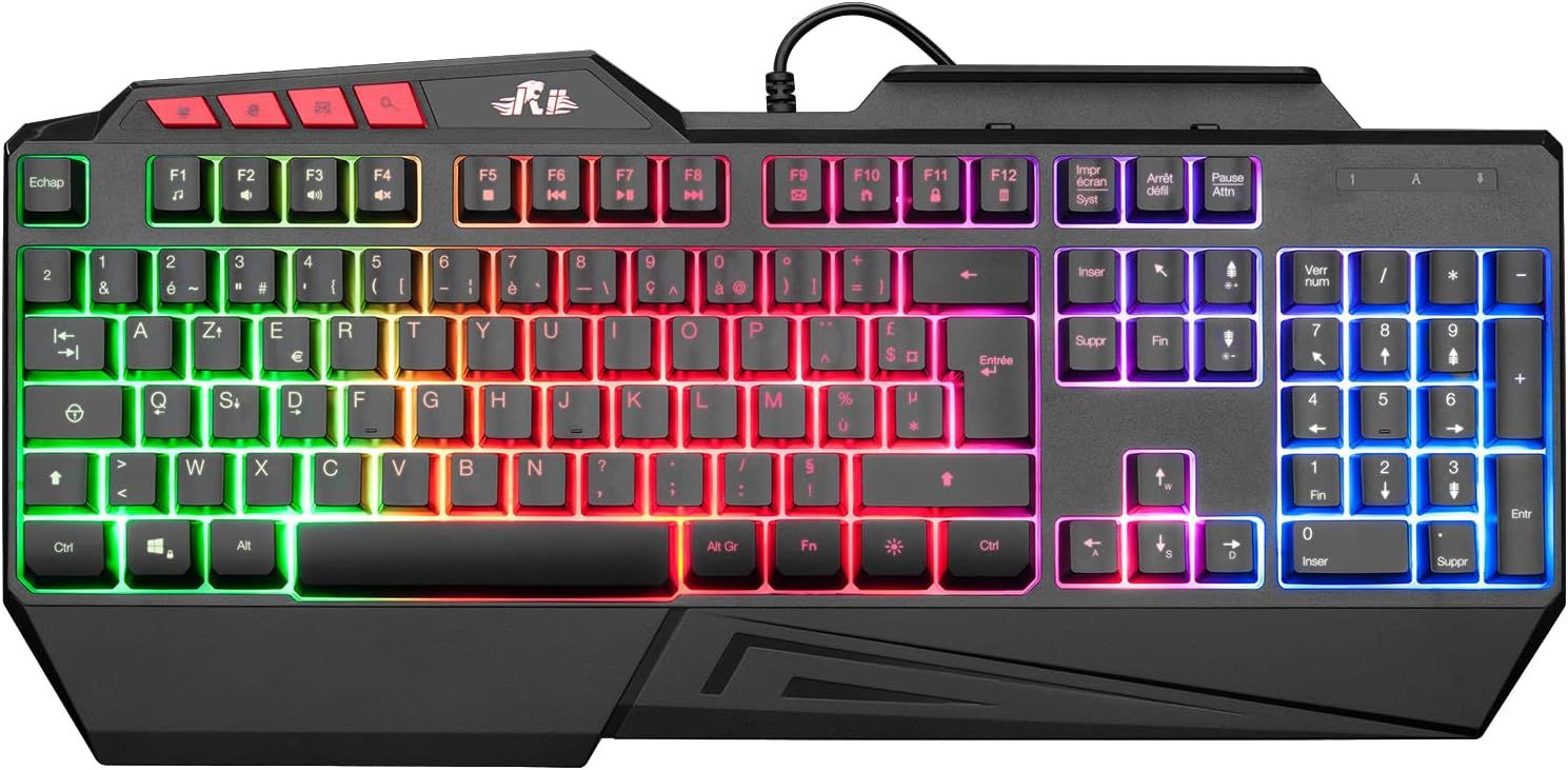 Rii Clavier Gamer Semi-Mécanique USB Filaire, 19 Touches Anti-Ghosting avec rétroéclairage LED, Multimédia, Silencieux, Clavier Gaming Membrane AZERTY Etanche pour Ordinateur Windows/IOS/Xbox/PS4/PS5