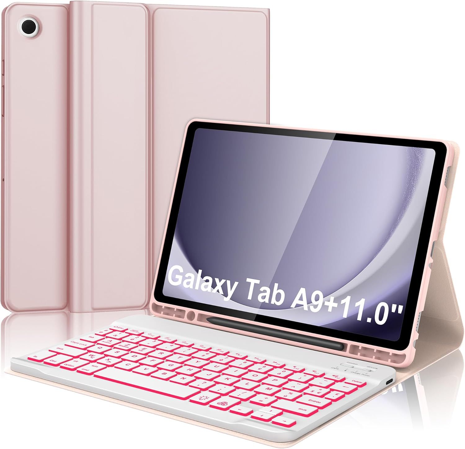 Clavier Pour Tablette Samsung A9 Plus - Coque Avec Clavier, Éclairage Du Clavier Magnétique Sans Fil Bluetooth Amovible, Pour Samsung Galaxy Tab A9+/A9 Plus 2023 11"", Rose
