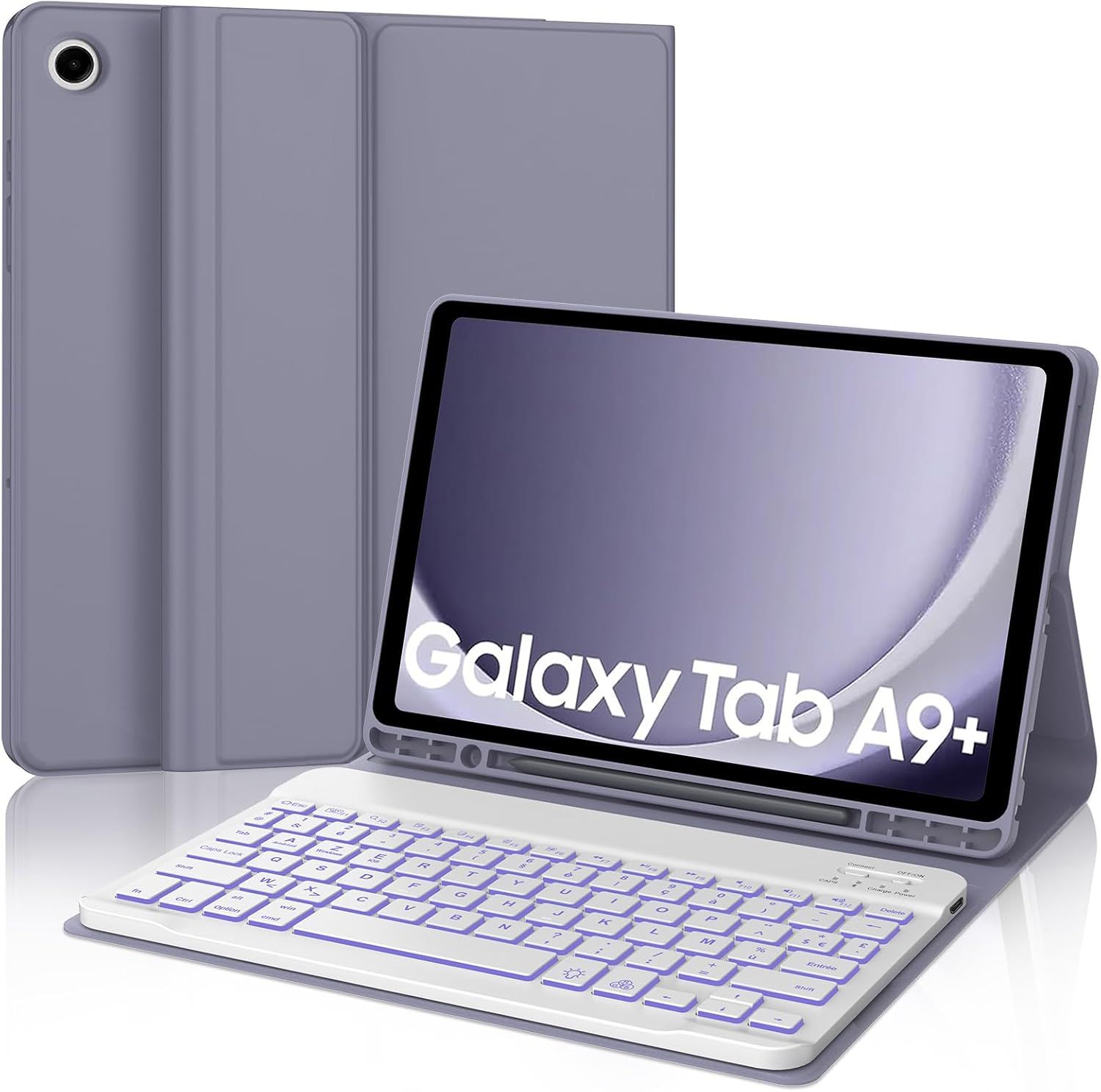 WAVATA Clavier pour Samsung Galaxy Tab A9+ 11 Pouces 2023 avec Rétroéclairé, Étui Clavier pour Samsung Tab A9 Plus 11" Magnétique Bluetooth Français AZERTY Layout, Violet