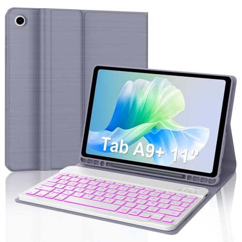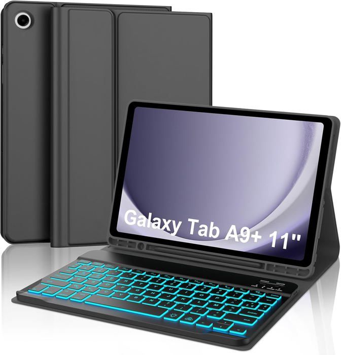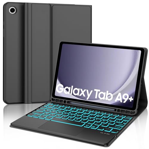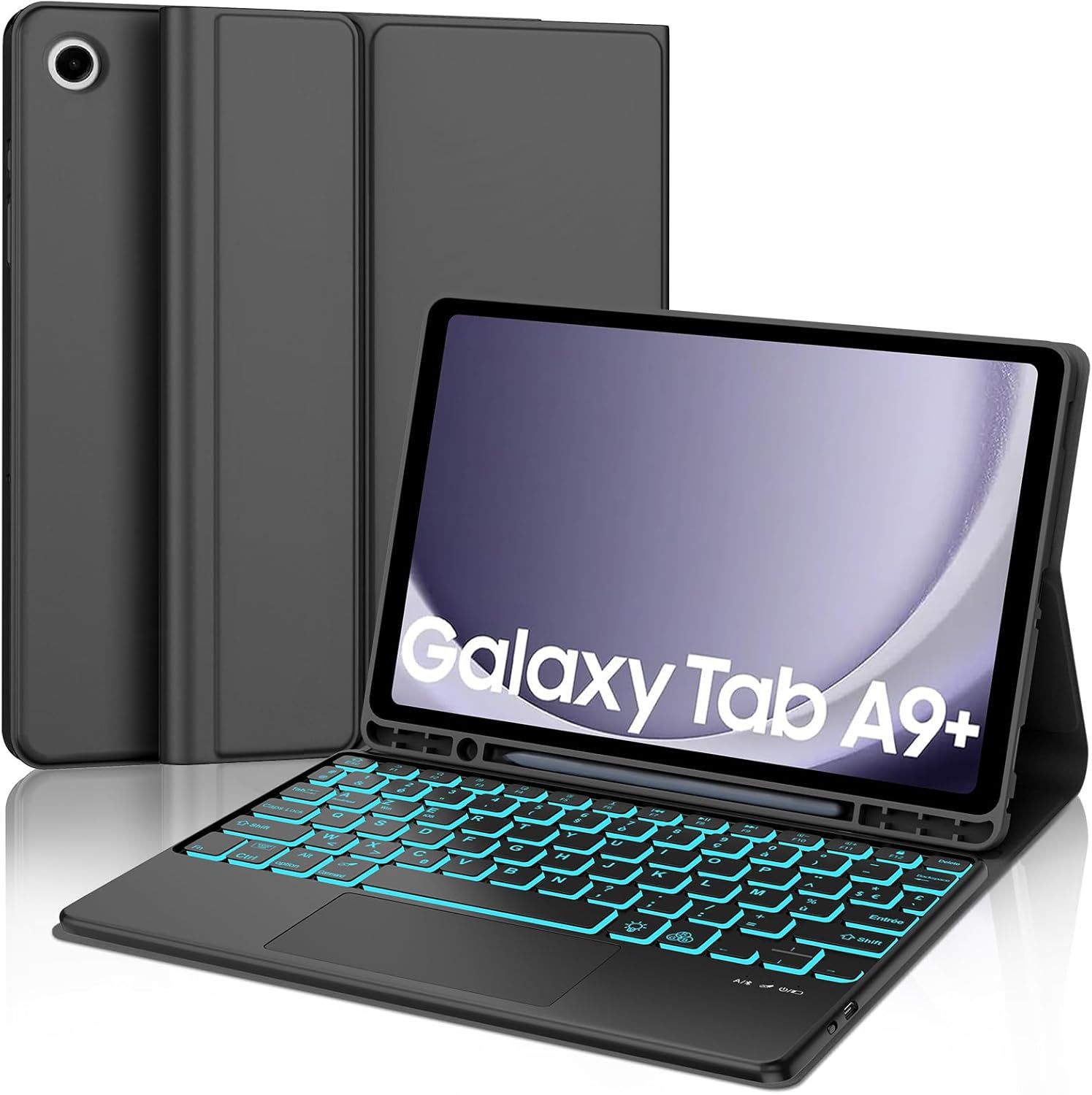 Étui pour clavier Samsung Galaxy Tab A9+ 5G/A9 Plus 11" : clavier rétroéclairé à 3 zones 7 couleurs pour Galaxy Tab A9+ Plus 2023 11 pouces - Étui amovible Smart Touchpad