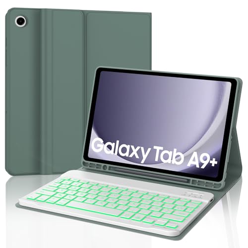 AVNICUD Clavier pour Samsung Galaxy Tab A9+ 2023 11 Pouces avec Rétroéclairage, Étui Clavier pour Samsung Tab A9+ 2023 Bluetooth AZERTY Français Magnétique Coque avec Pen Holder, Vert foncé