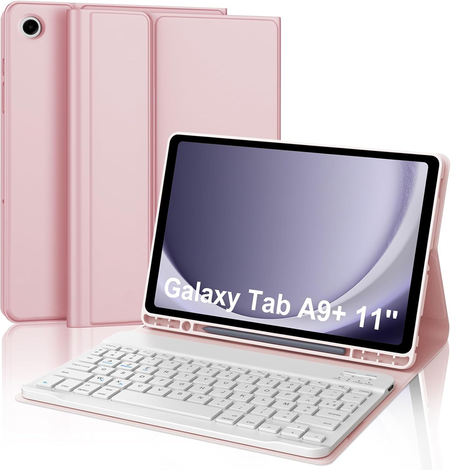 Yeegnar Clavier Samsung Galaxy Tab A9 Plus, coque avec clavier pour Galaxy Tab A9+ 11" 2023 (SM-X210 / X215 / X216), rose (stylet non inclus)