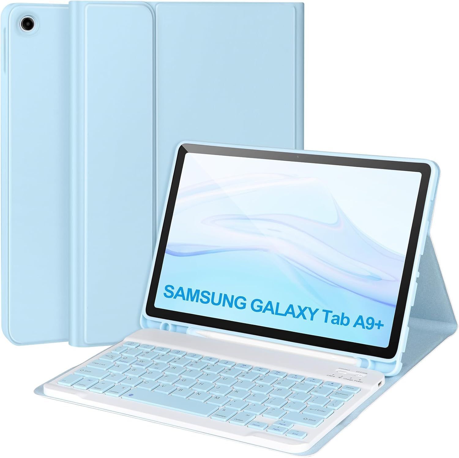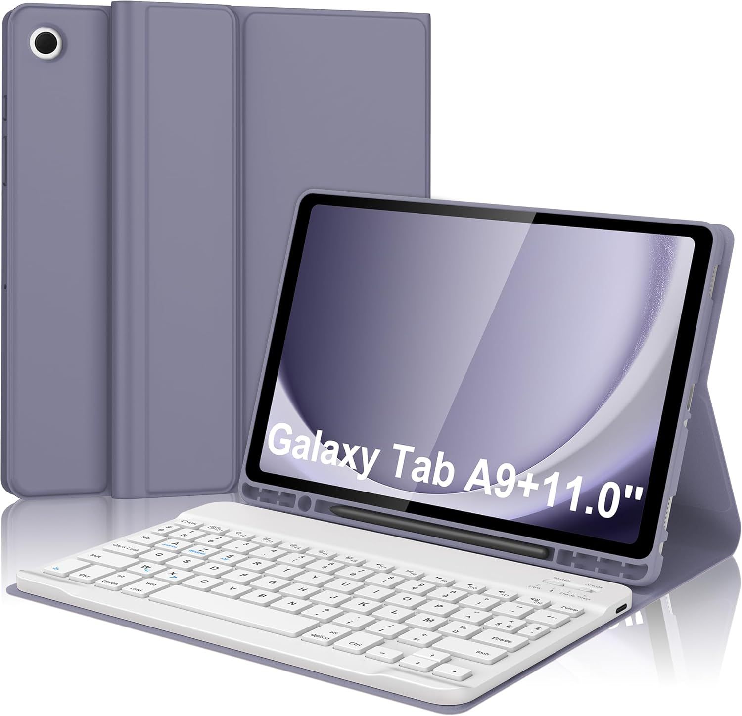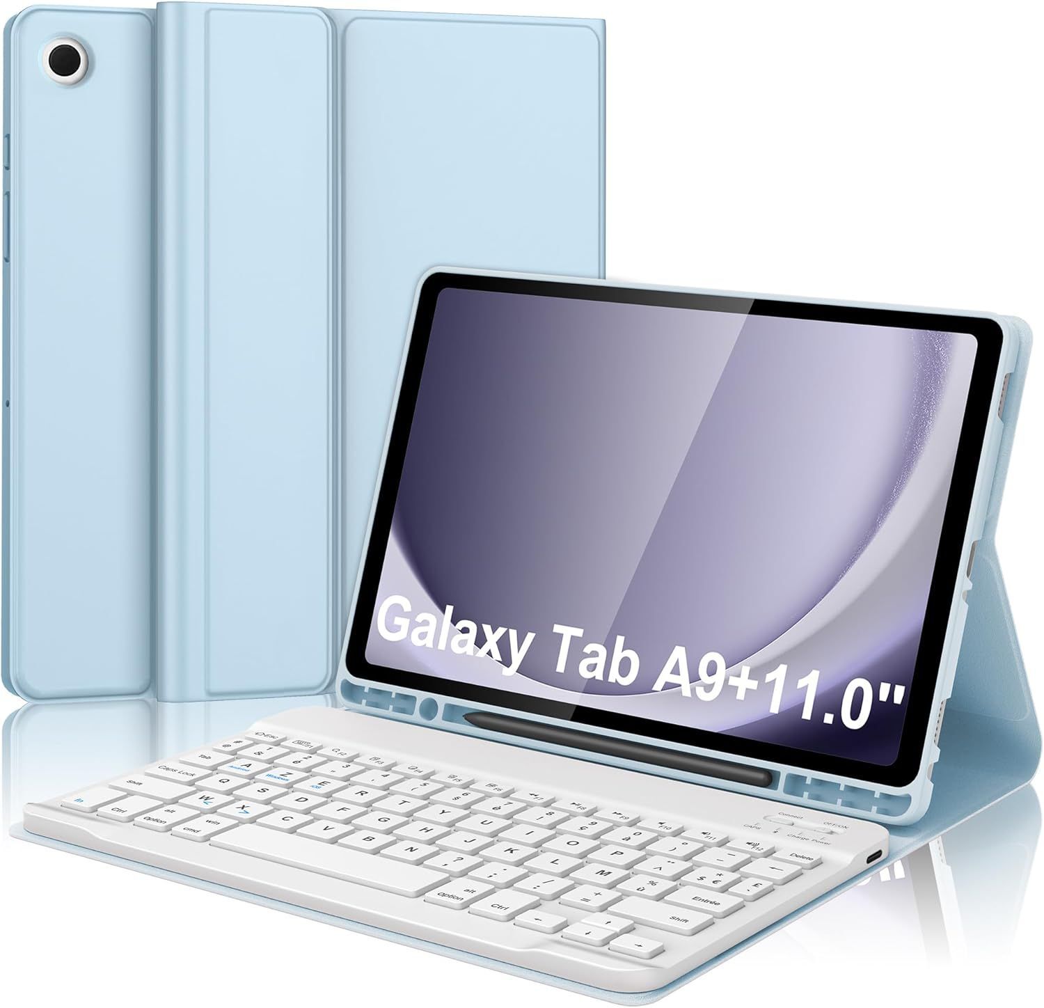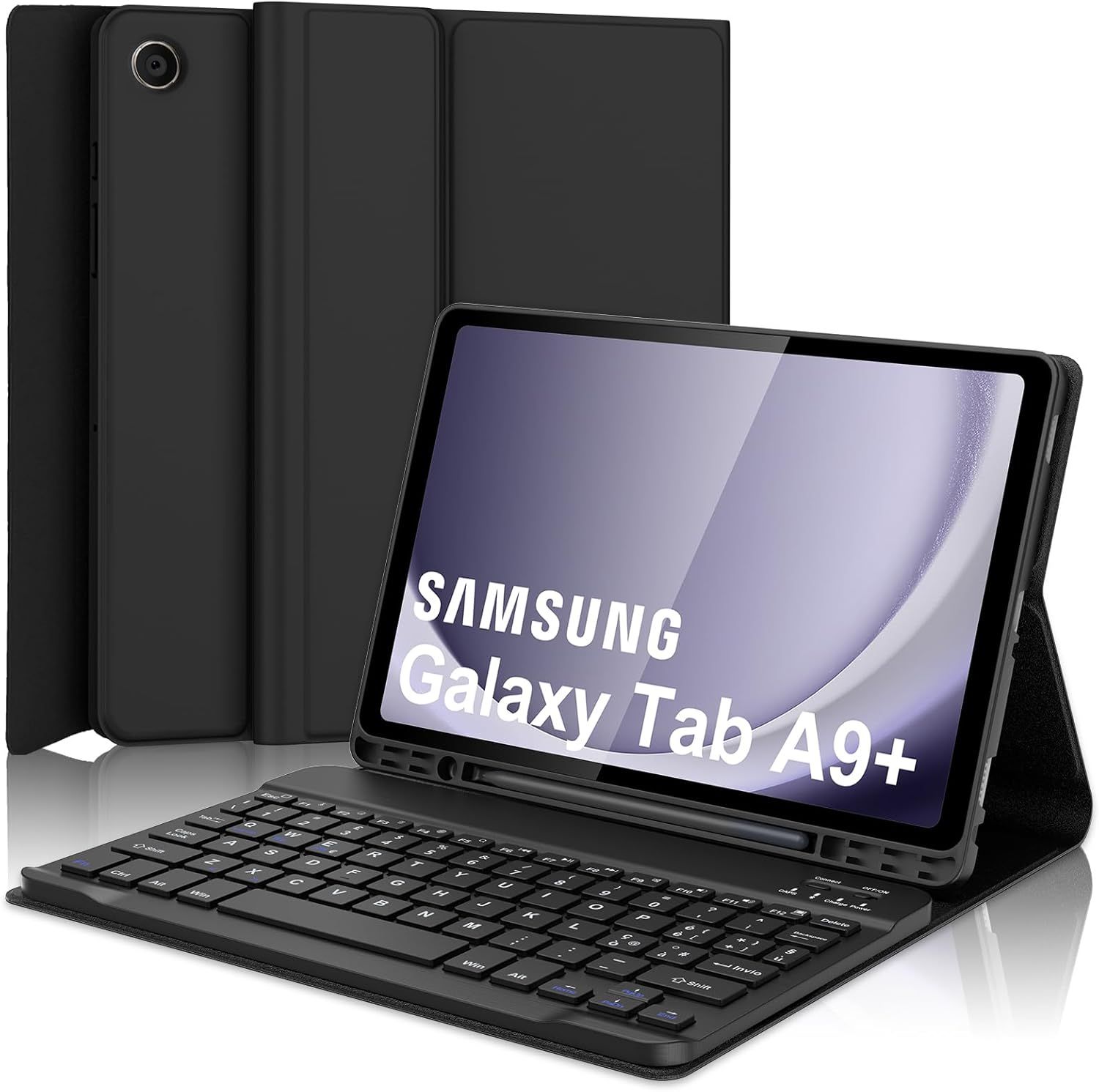 Étui clavier Samsung Galaxy Tab A9+ 11" 2023 (SM-X210/X216/X218), porte-stylo S intégré – Housse intelligente fine avec clavier Bluetooth amovible