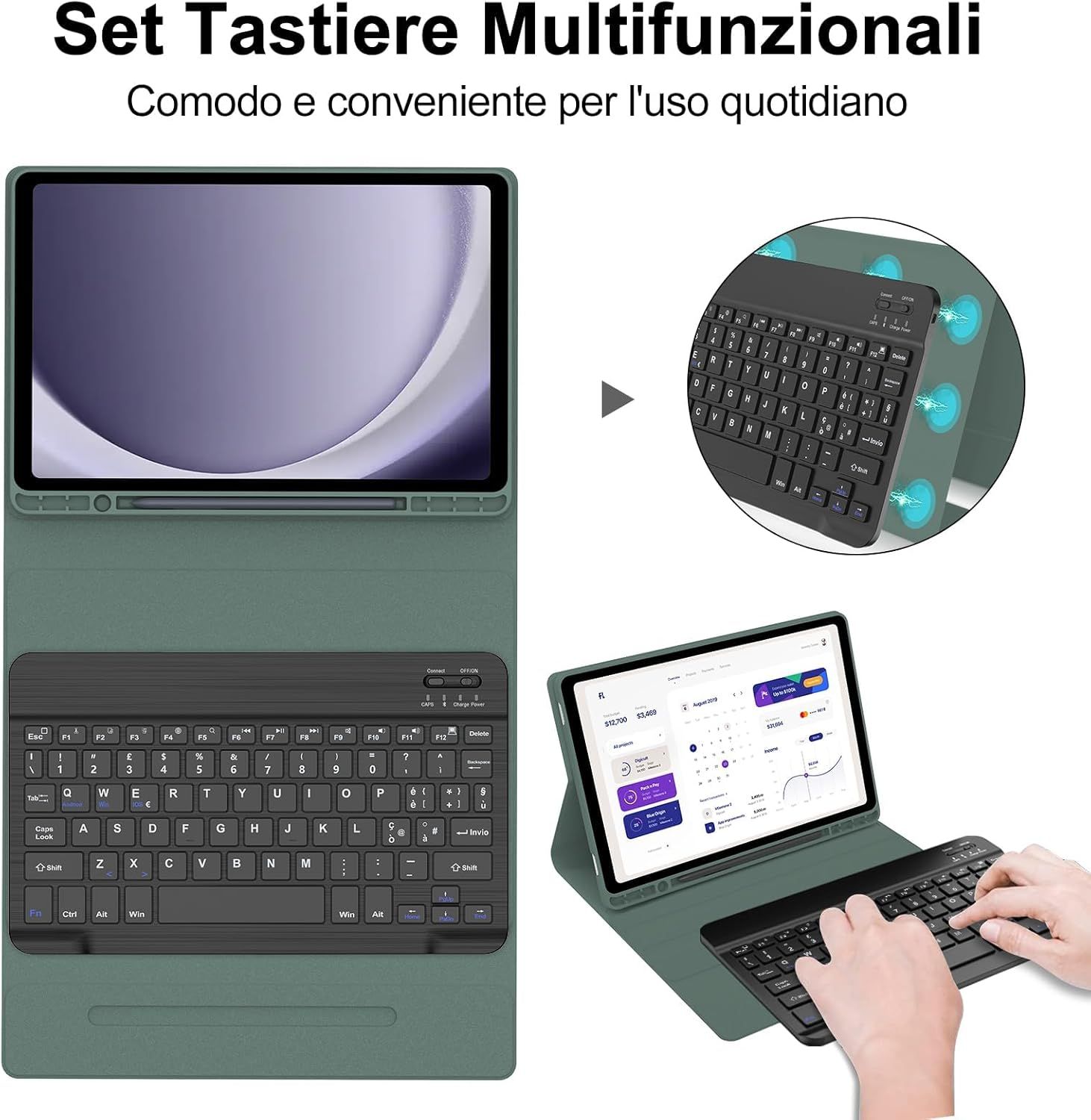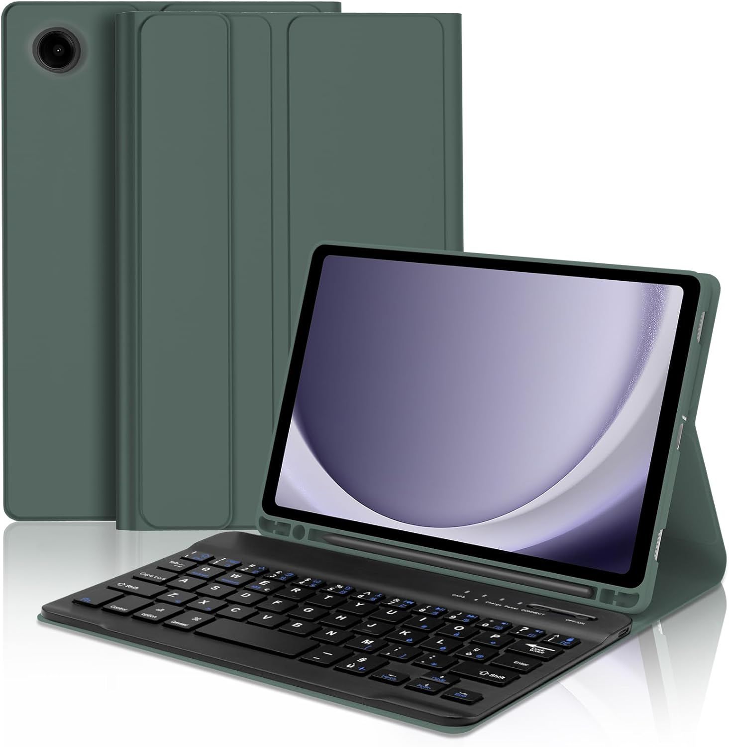 Coque Clavier Samsung Galaxy Tab A9, Clavier Samsung Galaxy Tab A9 8.7"" 2023, Samsung Galaxy Tab A9 Coque Avec Clavier Italien, Clavier Bluetooth-5.0 & Slim Smart Cover, Vert Foncé