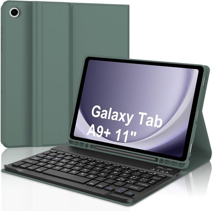 Clavier Pour Samsung Galaxy Tab A9+ 11 Pouces 2023, Étui Clavier Pour Samsung Tab A9 Plus Magnétique Détachable Azerty Layout Français Bluetooth, Vert Foncé[Z730]