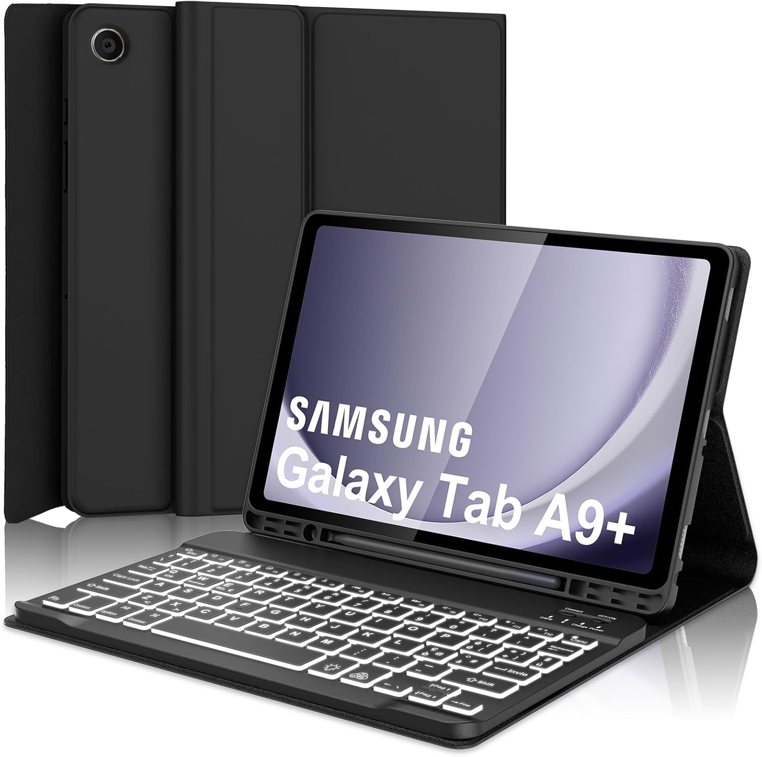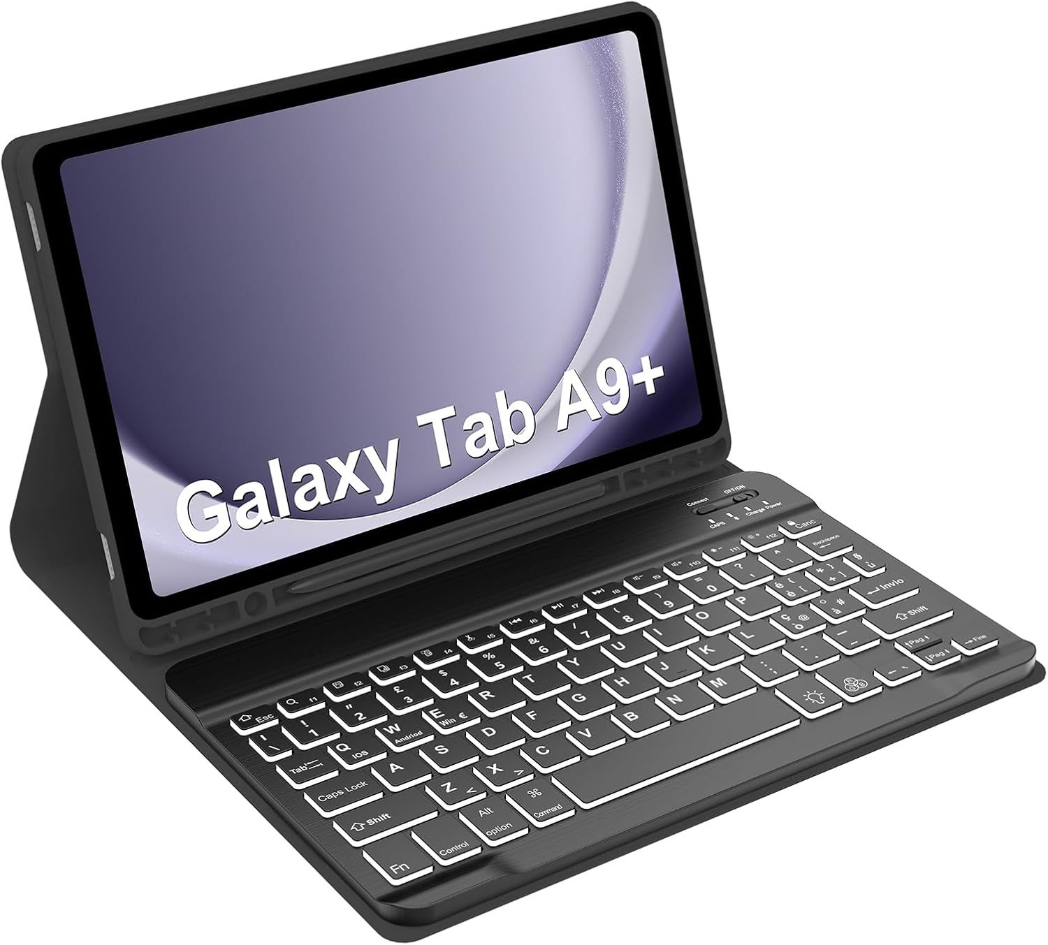 Clavier Pour Samsung Galaxy Tab A9+ 2023 11 Pouces Avec Rétroéclairage, Étui Clavier Pour Samsung Tab A9+ 2023 Magnétique Bluetooth Français Azerty Layout, Noir