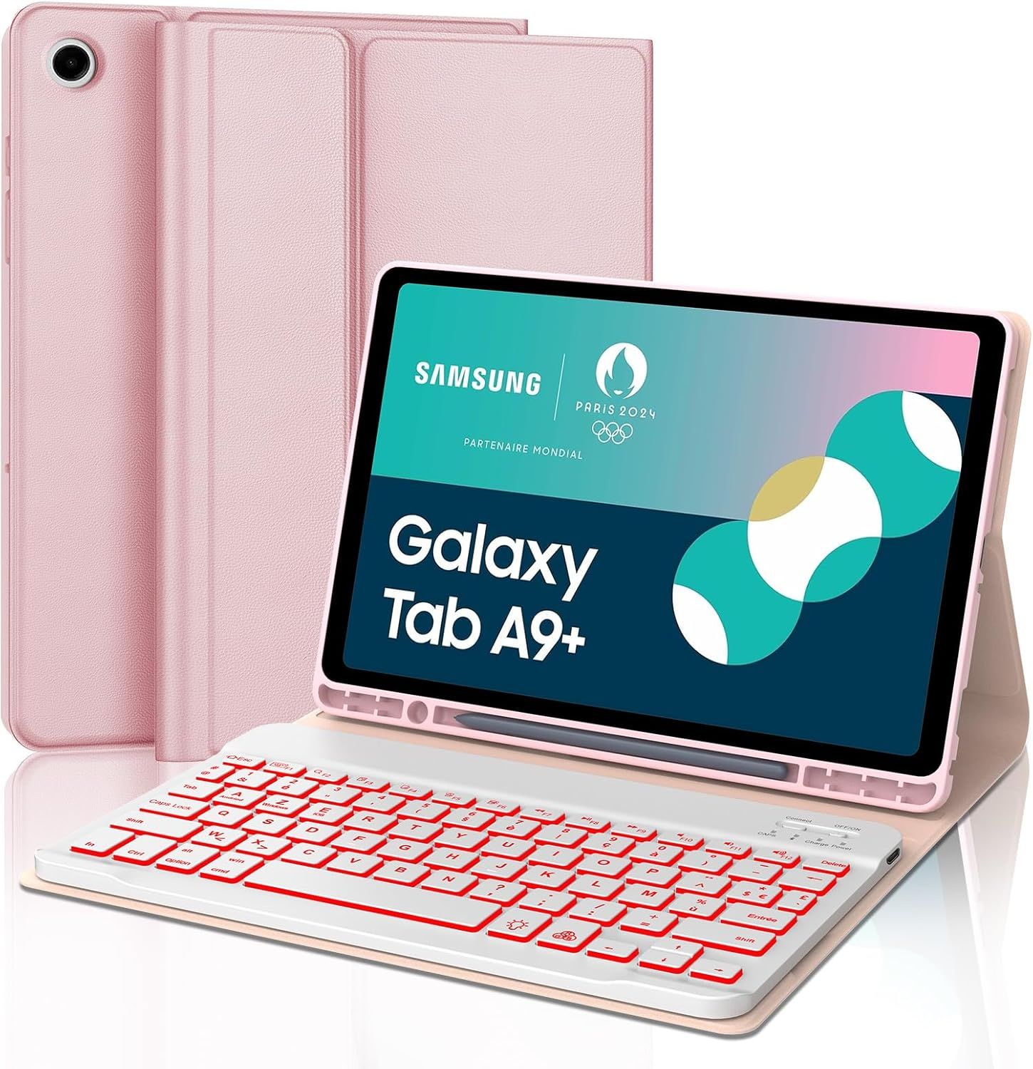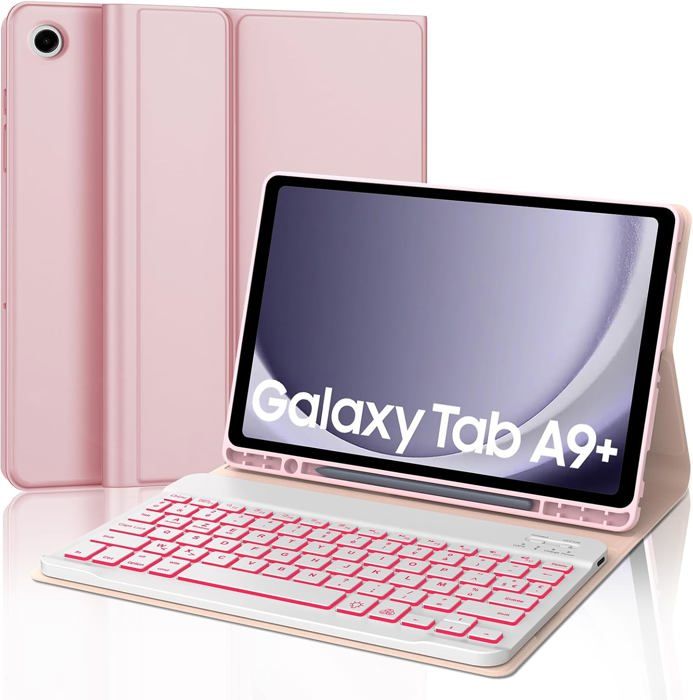 ChenQuanSarl-Clavier Samsung Tab A9 Plus 11""2023,Rétroéclairage 7 Couleurs,Azerty Français Étui Clavier Magnétique Bluetooth Sans Fil Etui Housse Pour Samsung Tab A9 Plus (Sm-X210/X216/X218),Rose