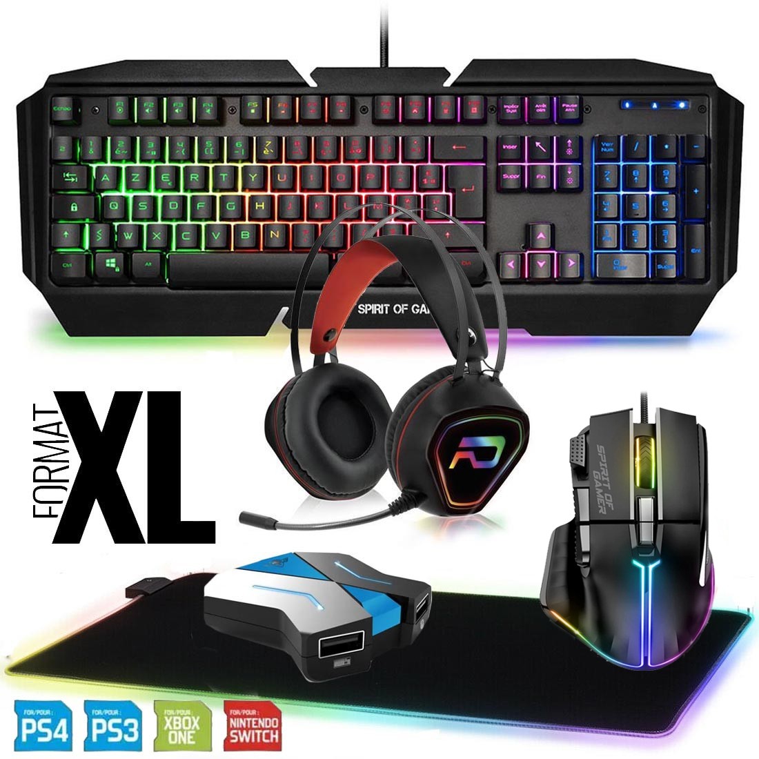 Spirit of Gamer, Pack Clavier Souris Gamer Filaire RGB + Convertisseur Mannette PS4/PS3/Switch 1 & 2