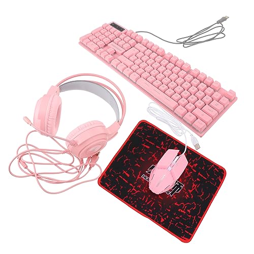 KOMBIUDA Clavier De Jeu Souris Optique Filaire, Casque Stéréo Et Tapis De Souris Gaming, Ensemble Gamer Pc Compatible avec Ordinateur, Rétroéclairé Multicolore, Bureau Et Gaming