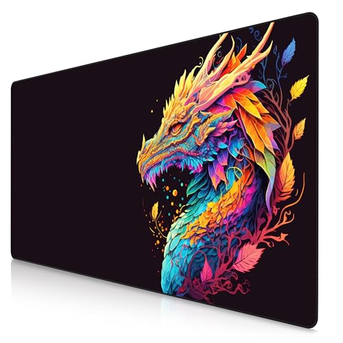 Grand Tapis de Souris de Jeu Dragon Manga, Tapis de Souris XXL 600x300x2mm, Mat de Claviers étendu avec Bords Cousus, Facile à Nettoyer, pour Souris Claviers Gamer Bureau