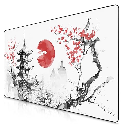 Peinture À L'Encre Tapis de Souris Grand, 600x300mm XXL Gaming Mouse Pad, Tapis de Souris Caoutchouc Naturel Antidérapant, Mouse Mat d'Ordinateur Durable pour Souris Claviers Gamer Bureau