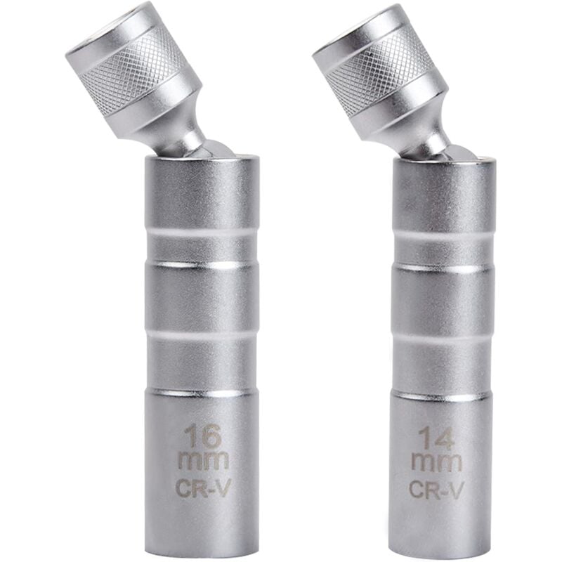2 Pièces Clé à Bougie Voiture,Cle a Bougie,Clé Bougie,Couille Bougie,Magnétique 16mm/14mm Longue,Flexible Clés à Bougie,12 Points Outil de Retrait de