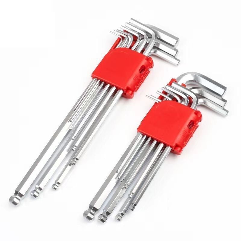 9 pièces 1.5-10MM clé allen sphérique, coudées 6 pans métriques et pouces avec etui portative, clef allen clé à laine pour retirer et installer