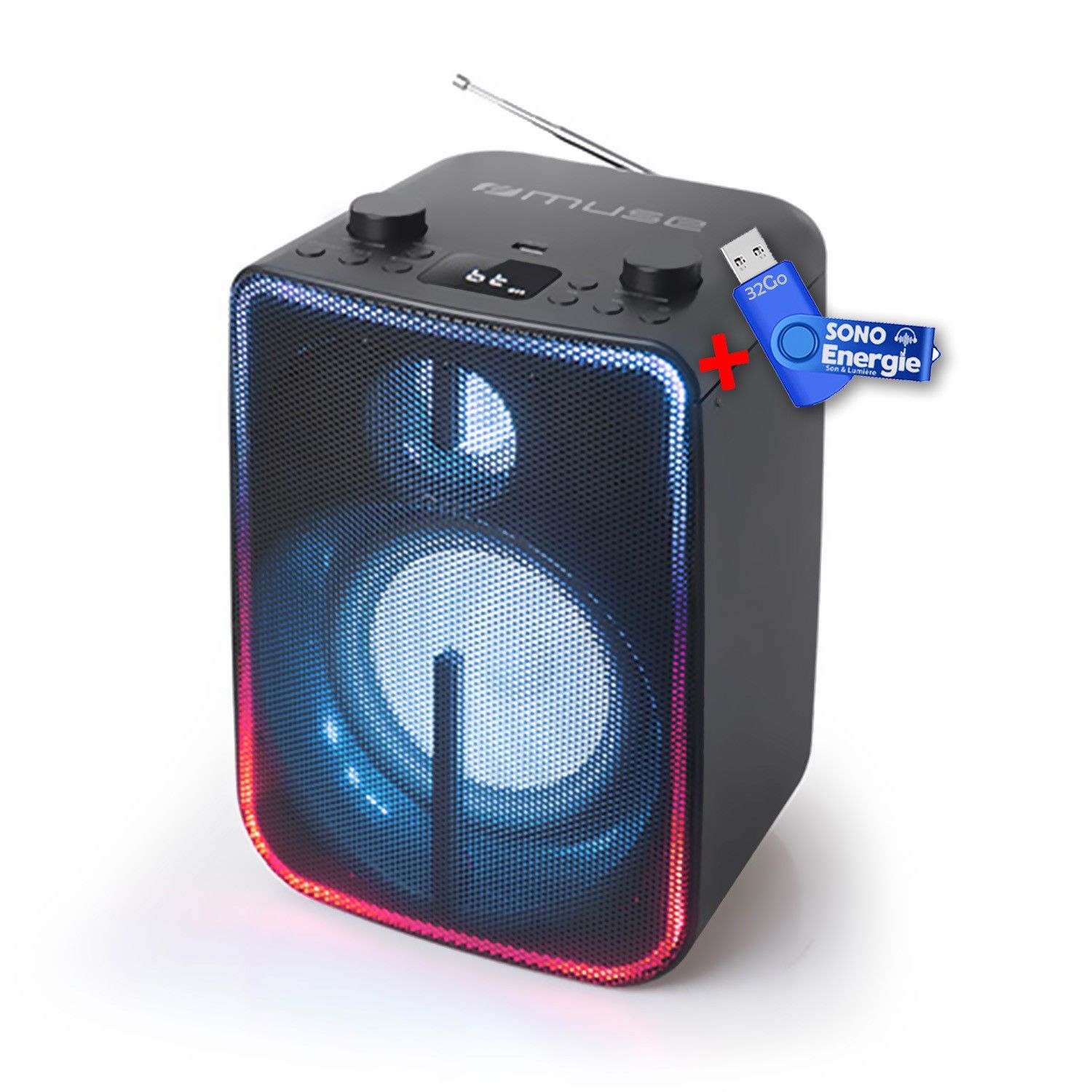 Enceinte sans fil Muse M-1802 DJ Stéréo 60 Watts - Bluetooth 5.0 - Radio FM - Effets lumineux - Batterie, AUX/USB+clé USB 32Go