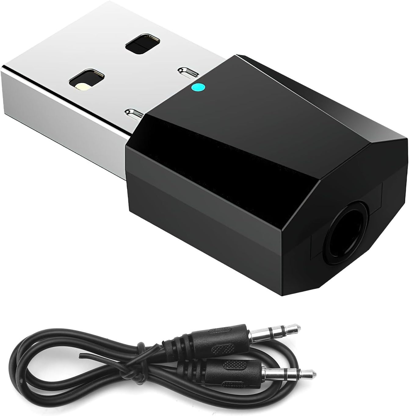 Adaptateur USB Bluetooth 5.0,Clé Bluetooth,Adaptateur Bluetooth Récepteur émetteur Audio 5.0 avec Câble Audio de 3,5 mm pour PC/TV/Voiture/Haut-parleurs/MP3/Système Audio Domestique/Casque