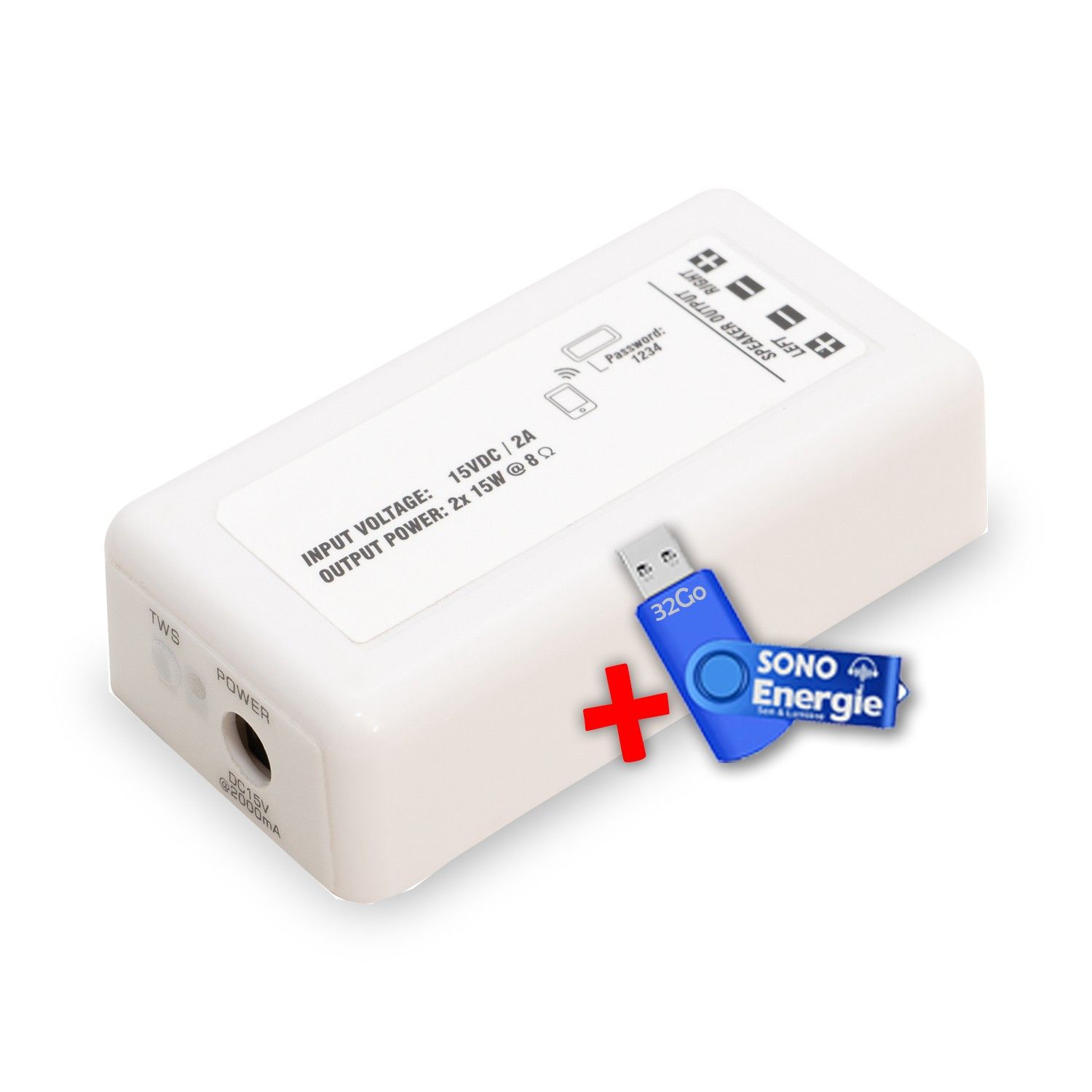 Amplificateur stéréo e-audio Bluetooth 5.0 2 x 15 W+Clé USB 32G