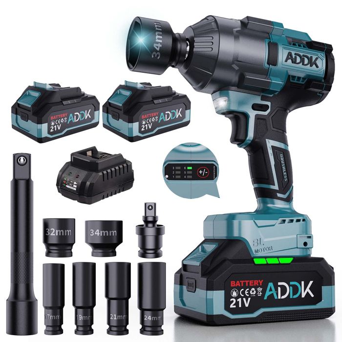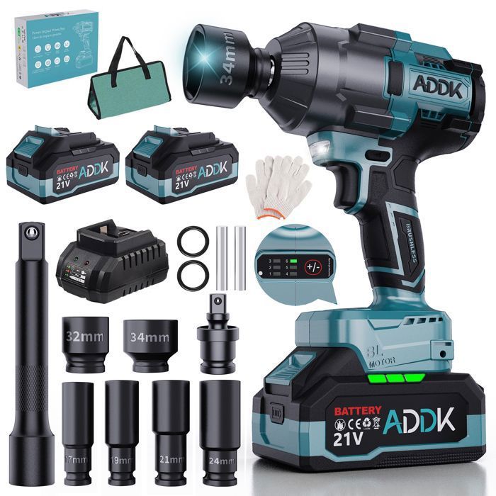 MEVRONISSHOP-Clé à Chocs sans fil Brushless 1000 Nm Boulonneuse à Choc Électrique Batterie 4000mAh Adaptateur Visseuse à Chocs 5 Douilles incluses Puissance et Facilité pour Boulonner et Déboulonner