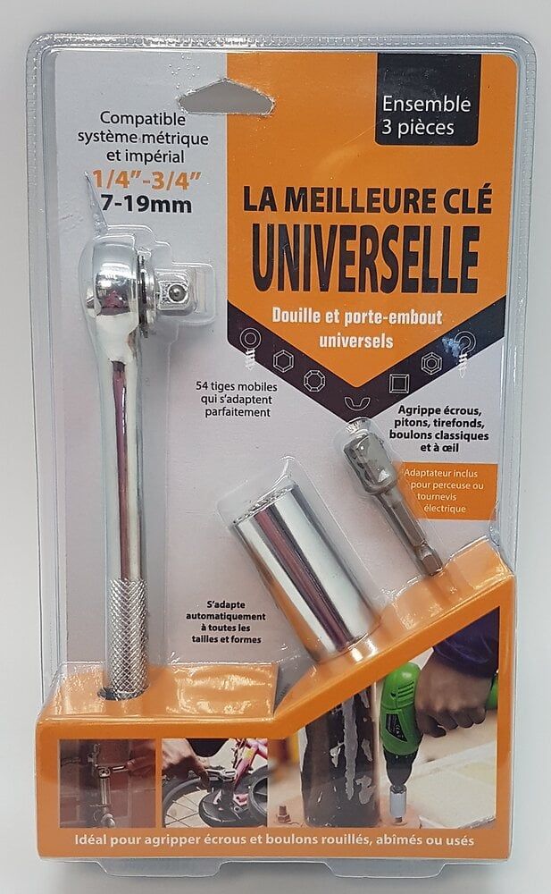 Venteo - Clé à Douille Universelle - Permet de visser et dévisser tous types de vis/boulon - S'adapte facilement et rapidement