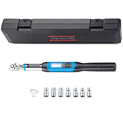 XZXXZSZ Kit de clé dynamométrique numérique 1/2in Drive W/LED &Buzzer Indicateur Double Direction Ratchet Head Vélo Moto Réparation Outil À Main(5-99.5 ft-lbs)