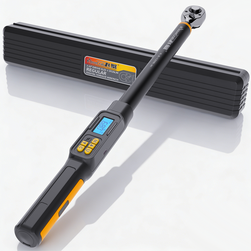 Clé dynamométrique numérique professionnelle Movecrab 1/2" 6,8-135 N.m ±2 % de haute précision avec affichage LED et alarmes vibrante, sonore et lumineuse triple (Nm/in.lb/ft.lb/kg.cm) pour la réparation automobile, moto et vélo
