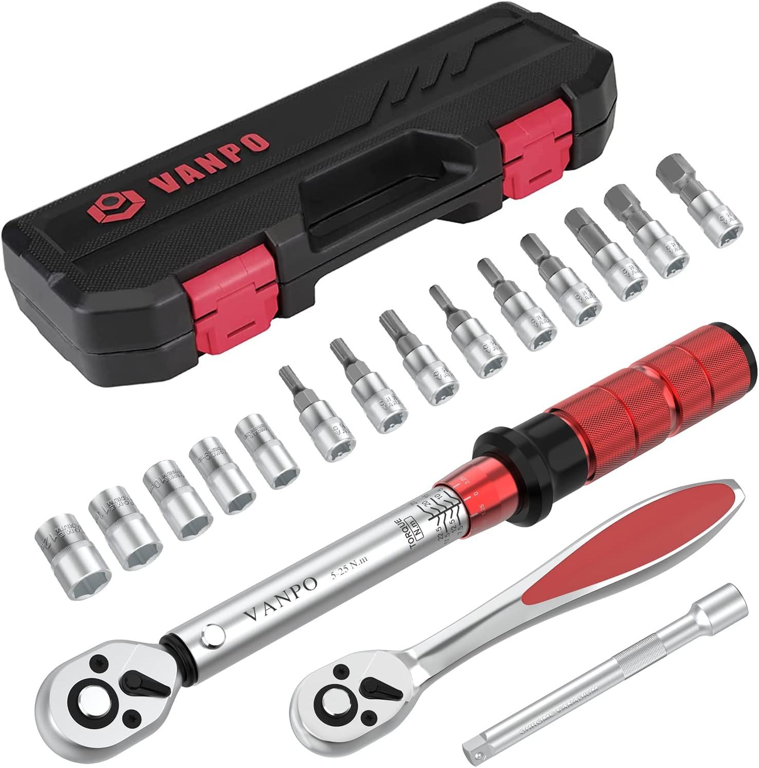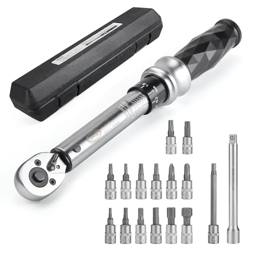 CXWXC Clé dynamométrique pour vélo 1/4", 1 à 25 Nm, outil de réparation, clé à six pans creux, kit de clé à douille hexagonale, pour vélo de route, VTT