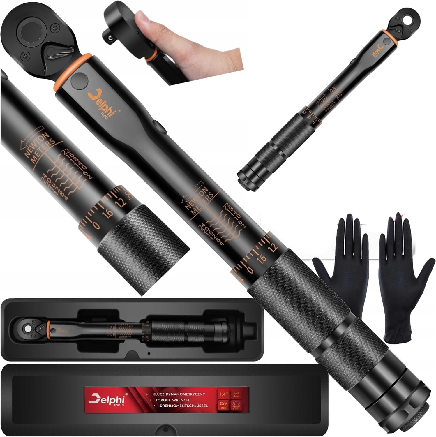 DELPHI Clé dynamométrique 1/2 pouce 2-24Nm ±4%, 72 dents Clé dynamométrique pour auto vélo moto Avec gants
