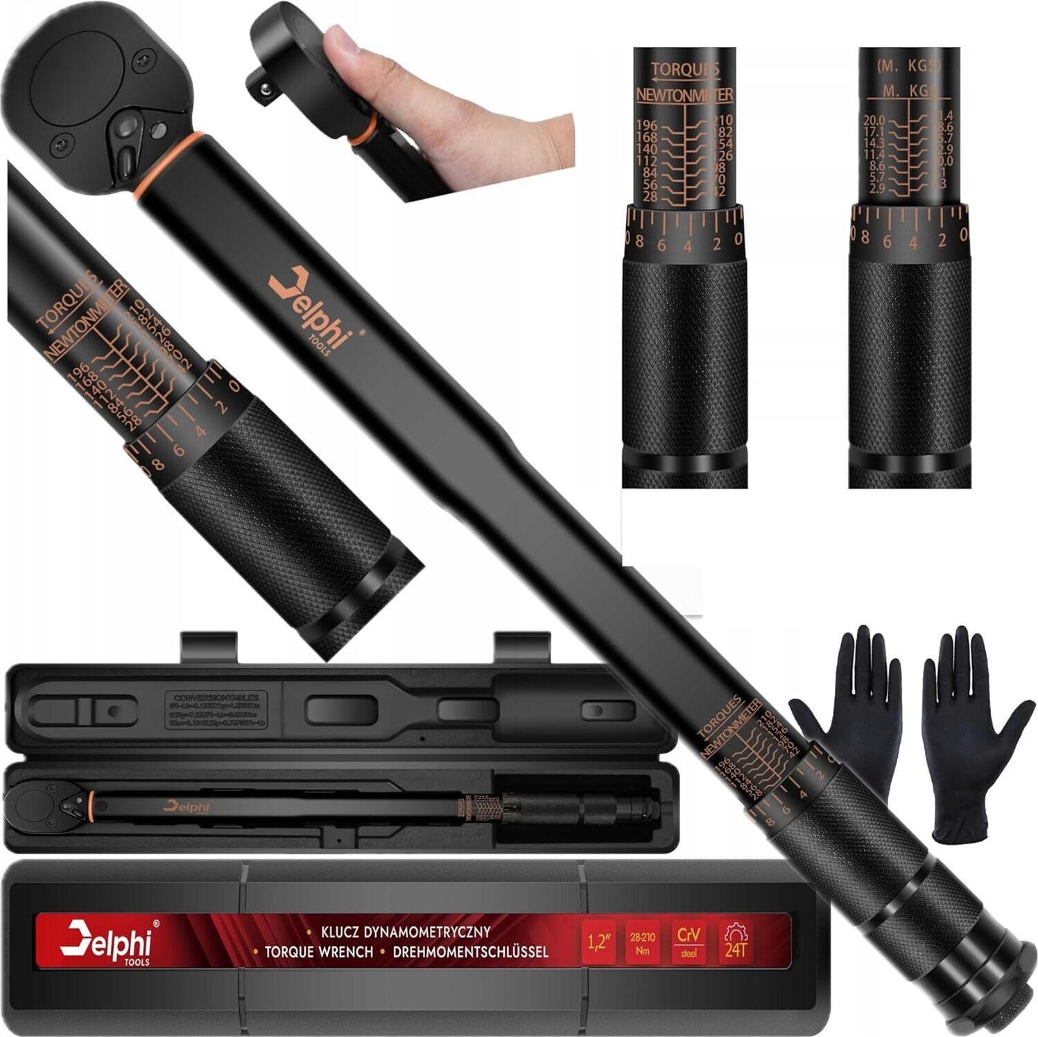 DELPHI Clé dynamométrique 1/2 pouce 28-210Nm ±4%, 72 dents Clé dynamométrique pour voiture vélo moto avec gants
