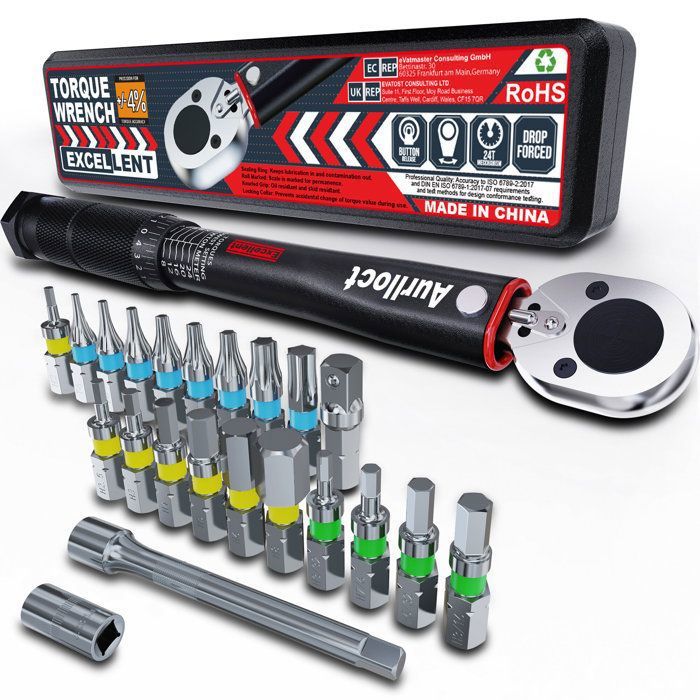 Clé Dynamométrique 1/4"" 2-24 Nm ±4 %,72 Dents,Clé Dynamométrique Pour Voiture,Vélo,Moto,Torque,Clé Avec Gants,Boîte De Rangement