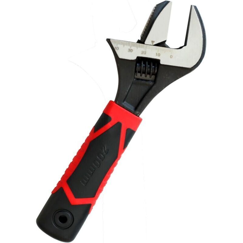 Molette Réglable de 200mm, Clé à Lavabo à Mâchoires Larges avec Finition Noire Oxydée, en Acier Cr-V, Graduée en Unités SAE et Métriques, Poignée