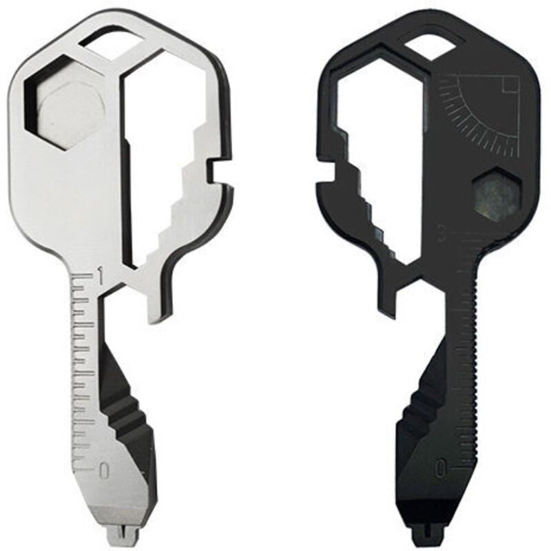 SABIR Outil de poche multifonction 24 en 1 en acier inoxydable en forme de clé, outil multifonction d'extérieur pour décapsuleur, tournevis, règle,