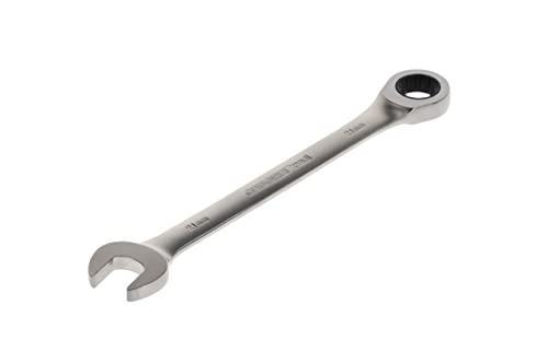 KS TOOLS - 922.0021 - Clé mixte Ultimate - clé plate 21 mm - Finition satinée - clé plate à cliquet en chrome vanadium - Angle de fourche et œil incliné à 15°
