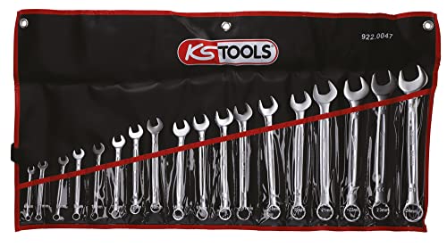 KS TOOLS - 922.0047 - Jeu de 18 clés mixtes métriques - Clé plate à cliquet en trousse - Composé de 18 pièces de 6 à 24 mm - Angle de fourche et œil incliné à 15°