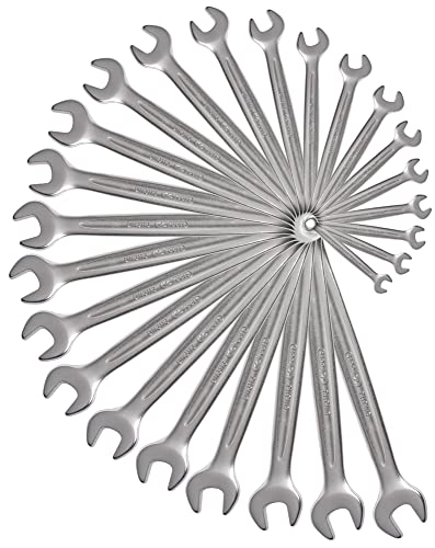 KS TOOLS - 922.0049 - Jeu de 25 clés mixtes métriques - Clé plate à cliquet en boîte - Composé de 25 pièces de 7 à 41 mm - Angle de fourche et œil incliné à 15°