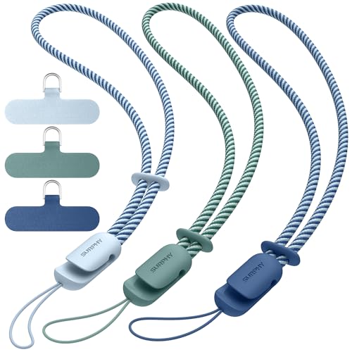 SURPHY 3 Pièces dragonne pour téléphone portable, Cordons avec 3 Patch pour Téléphone Portable, lanière, clé, USB, Lecteur MP3, MP4 et Plus (Nuage Bleu & Bleu Jay & Vert)
